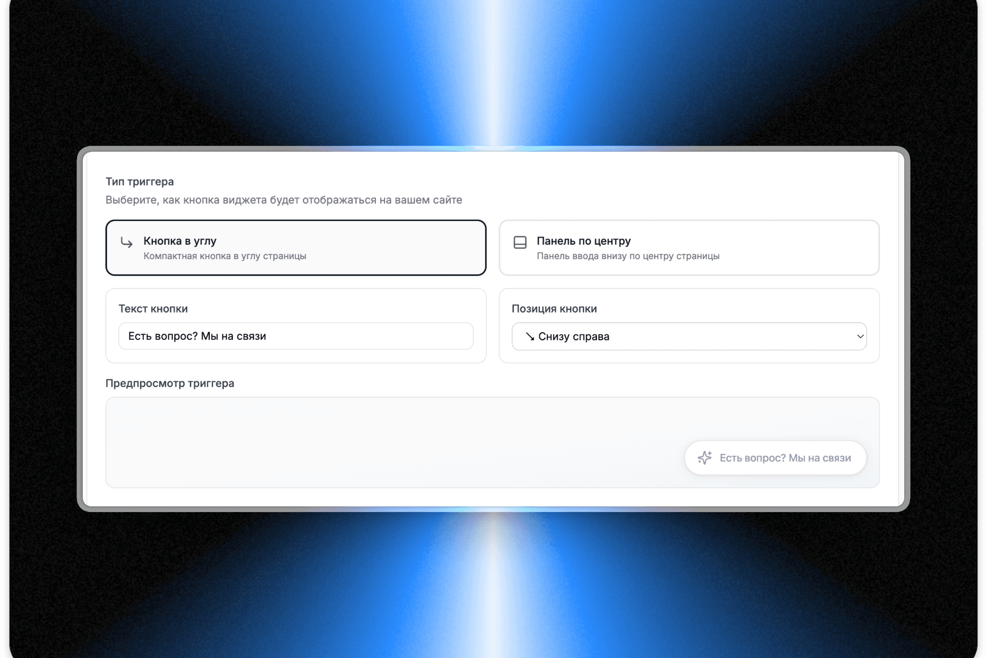 → Текст кнопки — измените стандартное "Есть вопросы? ИИ на связи" на своё