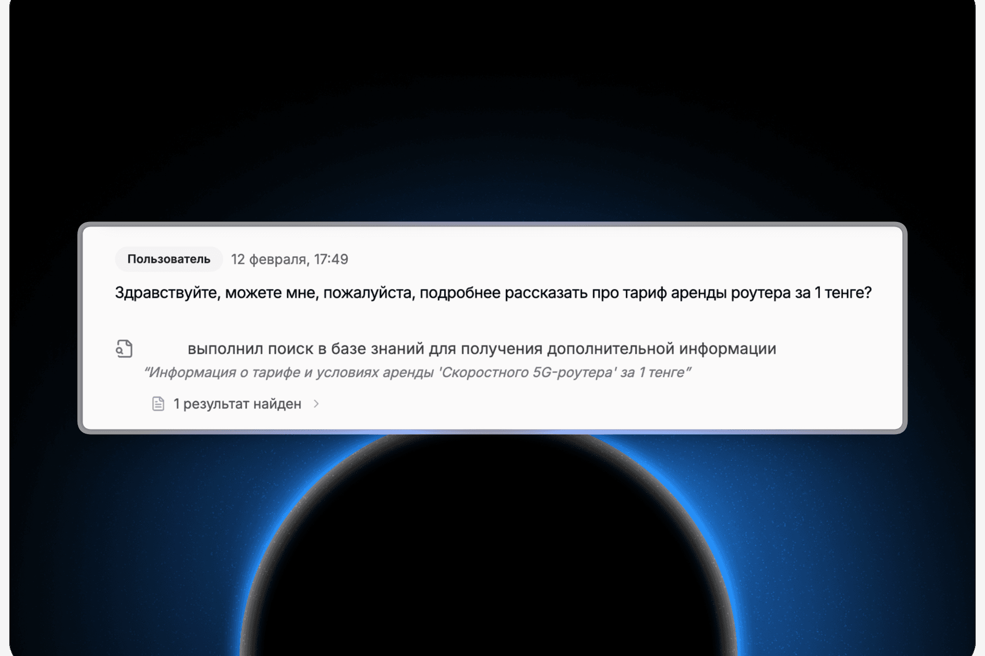 The search query formulated by the AI is visible The number of results found is displayed You can expand and see which knowledge base fragments were retrieved