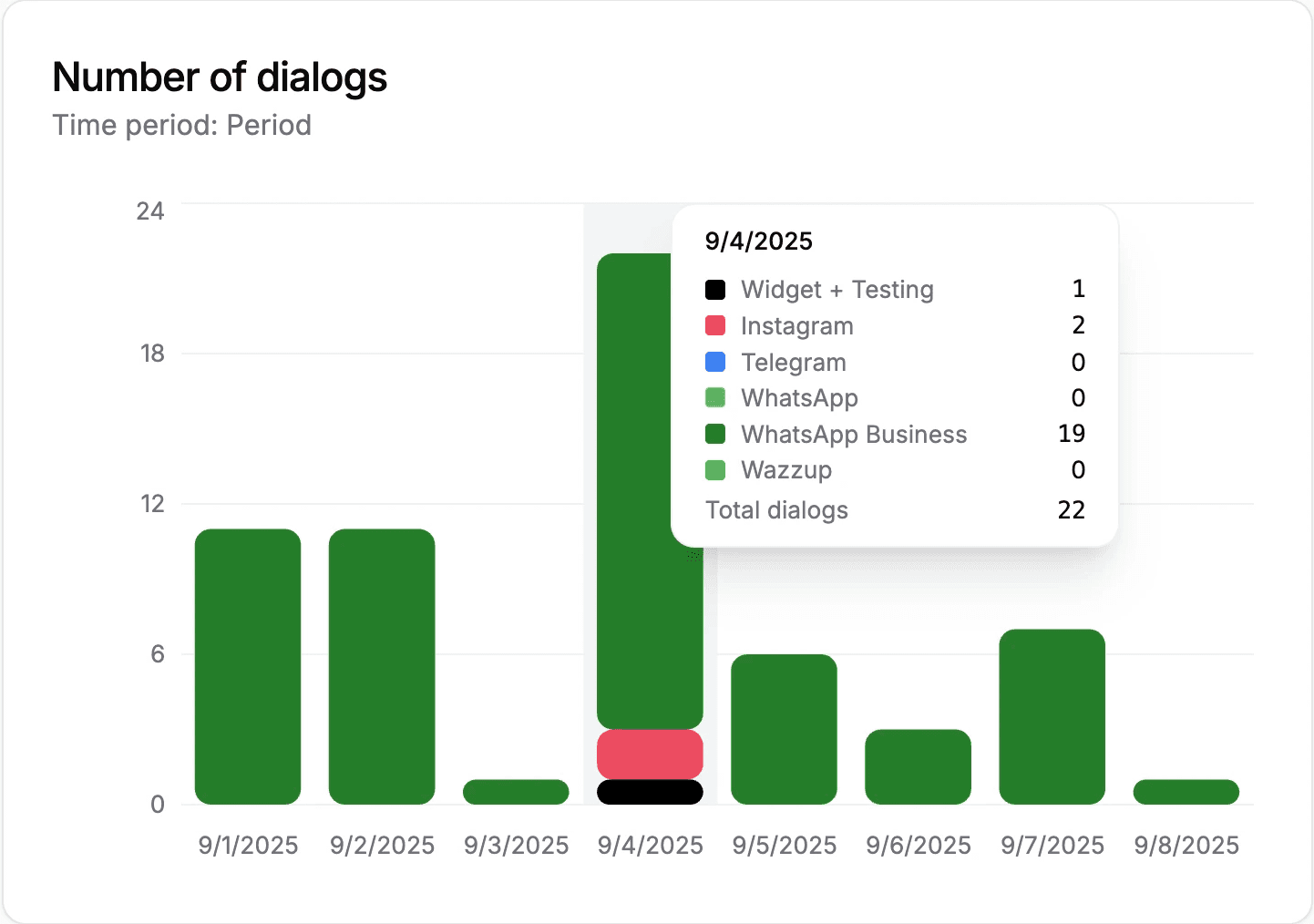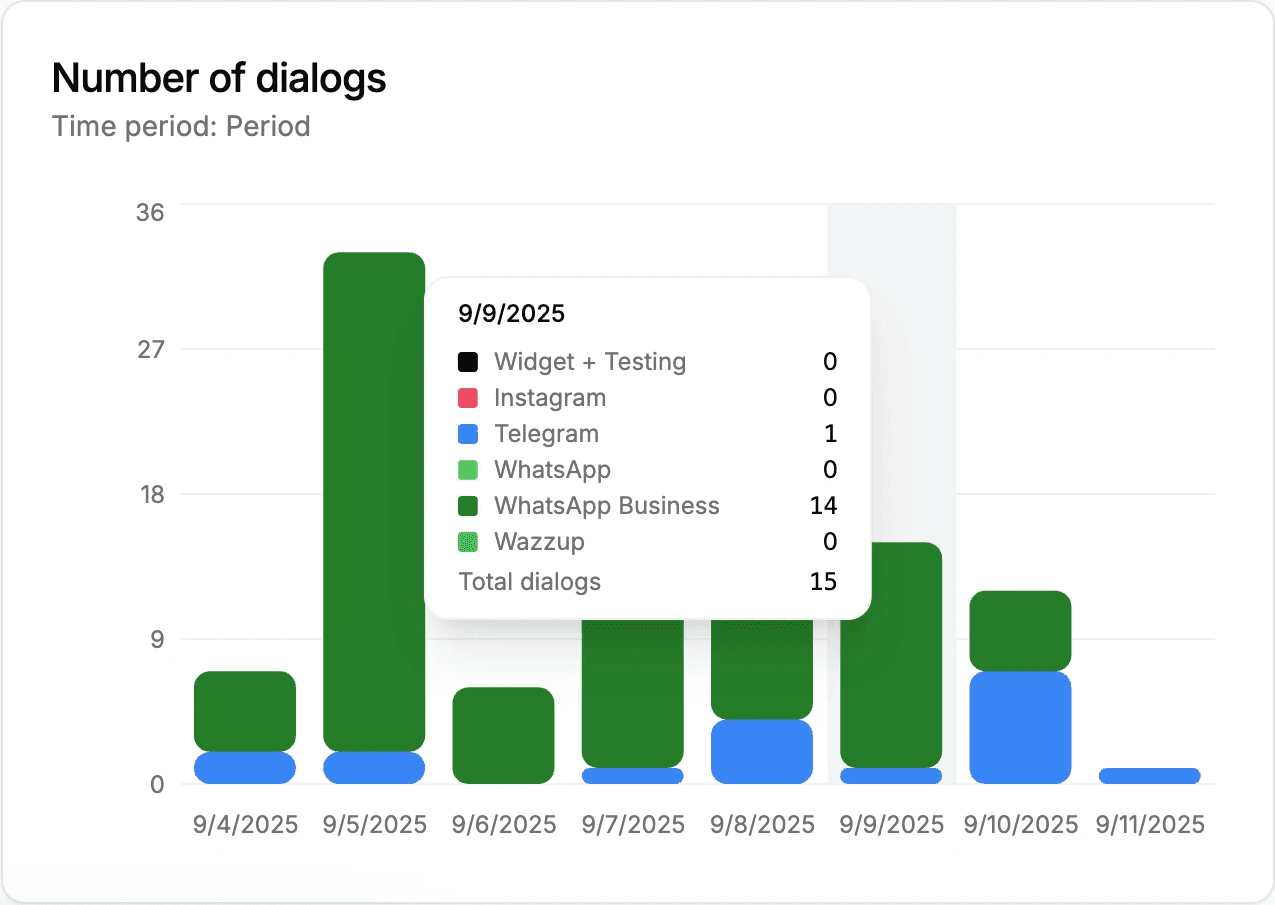 If you have multiple communication channels, you'll see every chat in one place. You can analyze Pleep's performance, improve him, and text customers on your own.